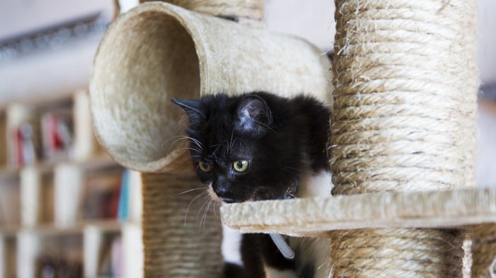 Kucing-kucing di sini dibiarkan bebas berkeliaran di dalam kafe sehingga bisa menyapa para pengunjung.