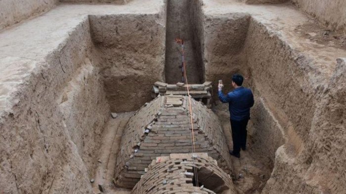 TRIBUNTRAVEL.COM - Sebuah makam misterius yang berbentuk piramida di temukan di bawah lokasi konstruksi di Tiongkok.