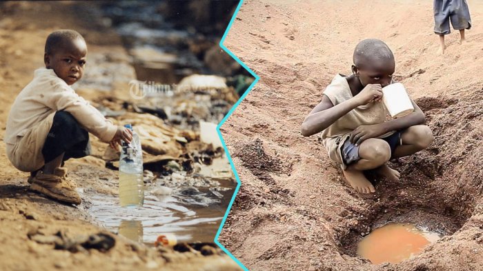 Ada yang harus berjalan dengan jarak jauh, hingga rela minum air yang kotor.