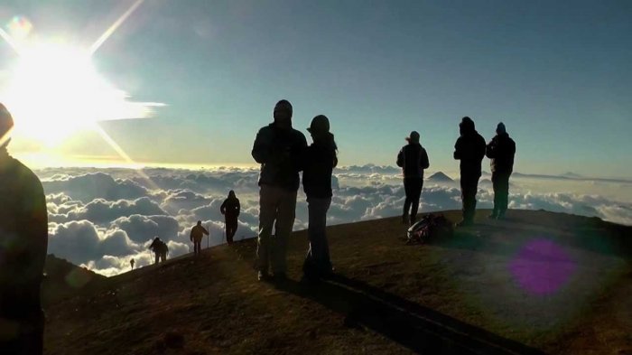 Dua kelompok mendaki puncak Acatenango yang berada di sebelah barat Ibu Kota Guatemala City.