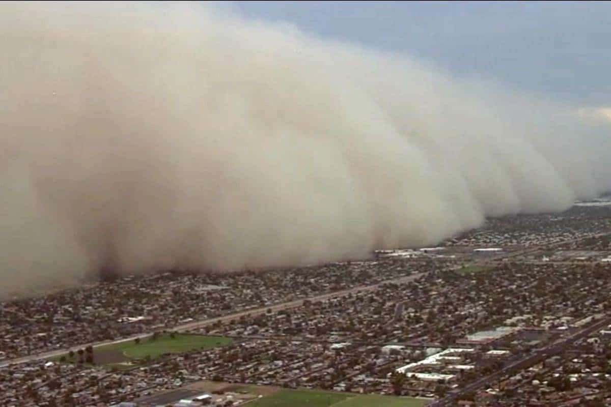 Badai ini muncul setelah angin kencang yang tertiup dan membuat pasir dan kotoran beterbangan.