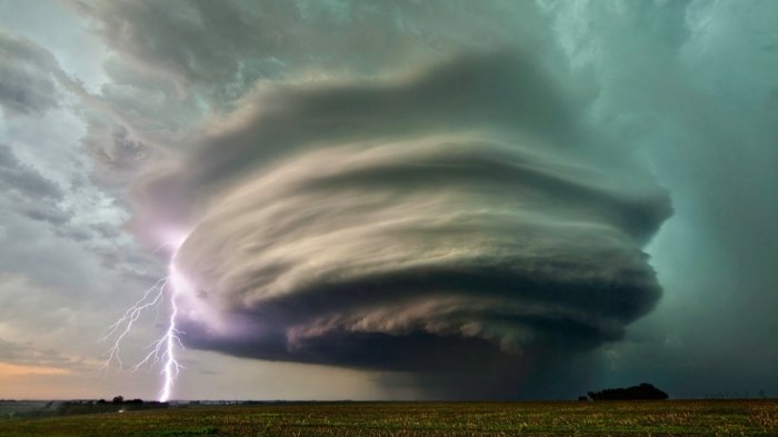 Badai ini biasanya membawa hujan es, petir, dan angin yang kencang.