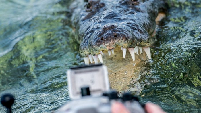 Ini adalah kisah yang pertama seorang berani berenang dan berkontak mata langsung dengan buaya.