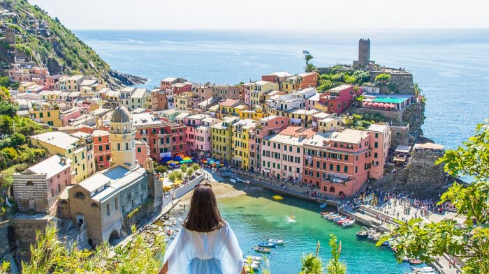 Dengan pemandangan rumah-rumah cantik yang tampak seperti diwarnai oleh pensil warna atau krayon, dan menjorok ke tebing, Vernazza menjadi permata pesisir di Italia bagian utara.