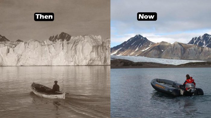 Tapi setelah 100 tahun, gletser telah berubah secara drastis karena perubahan iklim.