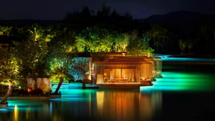 "Landscape itu menyihir sebagai oasis tropis mencerminkan pulau dengan flora serta fauna asli. Sebanyak 900 pohon dipilih dan diangkut ke resort dari seluruh pulau Hainan untuk menciptakan lingkungan yang berkelanjutan dan menawan.”