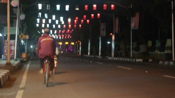 Lampion terpasang di pinggiran trotoar bahkan menggantung di atas jalan protokol.