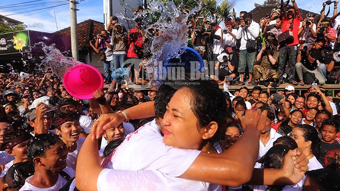 TRIBUNTRAVEL.COM - Tradisi Omed-omedan di Banjar Kaja, Kelurahan Sesetan, Denpasar, Bali rutin digelar setiap tahun, tepatnya sehari setelah hari raya Nyepi.