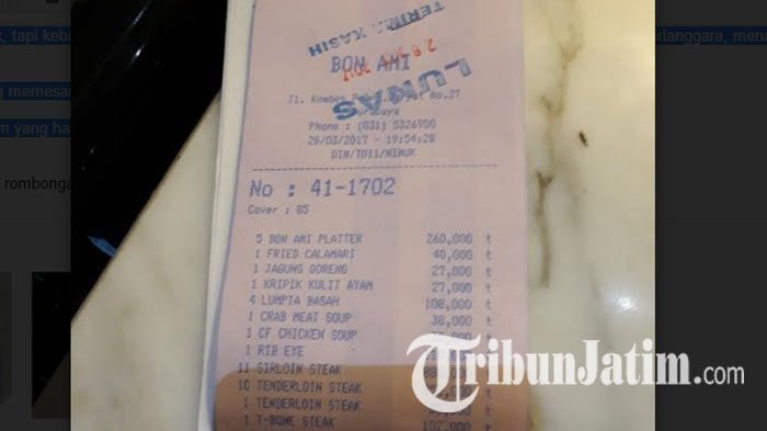 Tidak hanya itu, mereka juga memesan nasi campur untuk 15 porsi yang harganya mencapai Rp 675 ribu.