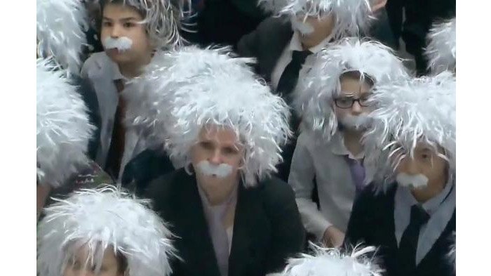 Ternyata mereka dalam acara untuk memecahkan rekor dunia orang-orang yang berpakaian Albert Einstein.