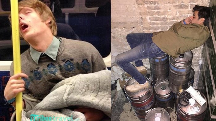 Beberapa dari mereka tertangkap tidur ditempat umum dengan gaya yang cukup nyeleneh.