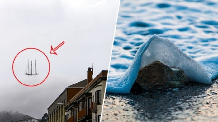 7. The Sutro Tower di San Francisco yang tertutup kabut menciptakan ilusi optik seolah ada kapal laut yang terbang di atas kota