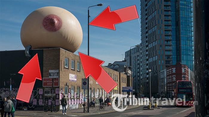 Balon angin raksasa berbentuk anatomi tubuh perempuan baru-baru ini muncul di Shoreditch, London.