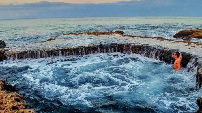 Jika dilihat sekilas bentuknya menyerupai kolam renang namun dibuat oleh alam.