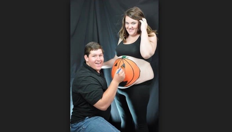 Mereka bahkan menggambar labu pada bagian perut yang sudah mulai membesar karena hamil.