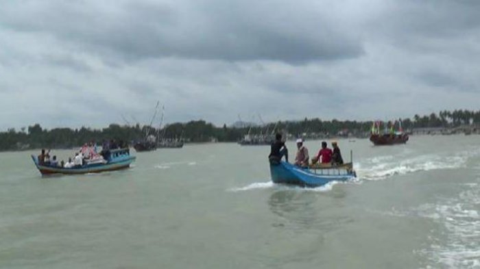 Sejumlah perahu nelayan ikut mengiringi prosesi pelepasan.