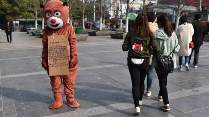 Nah, tapi hal berbeda bakalan kamu temukan saat bertemu dengan badut beruang yang ada di Hefei, Provinsi Anhui, China.