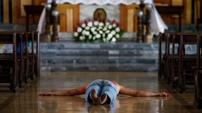 Ritual aneh ini terjadi pada Rabu Kudus dan dilakukan umat Katolik di San Jose, Kosta Rika.