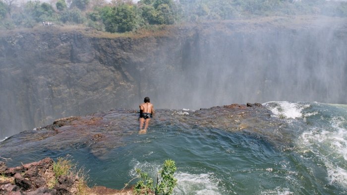 Jadi, orang-orang akan berenang di bibir air terjun dan dapat melihat langsung ke bawah jurang.