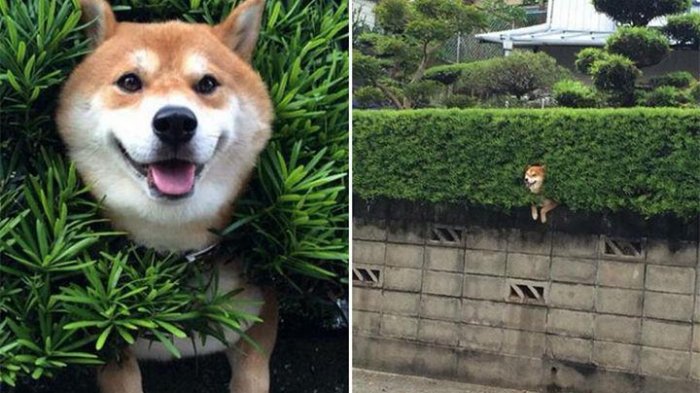 Anjing ini masih bisa berpose di depan kamera meski dirinya tengah terjebak.