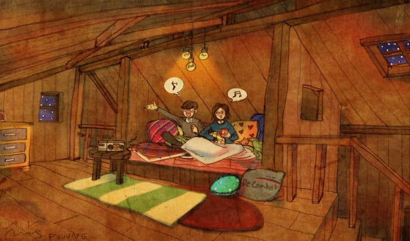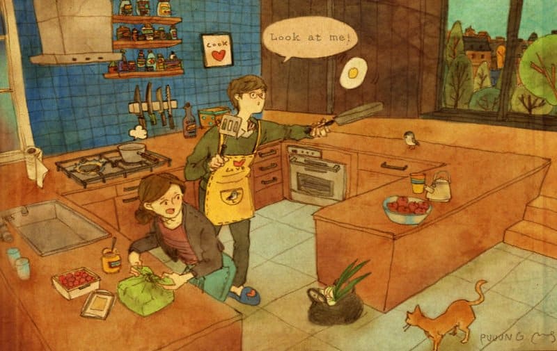 Seperti beberapa ilustrasi yang digambarkan Artis Korea Puuung ini menunjukan jika kebahagiaan itu begitu sederhana.