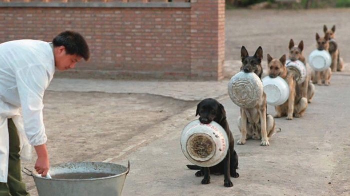 3. Kawanan domba yang berebut melewati sebuah gerbang.