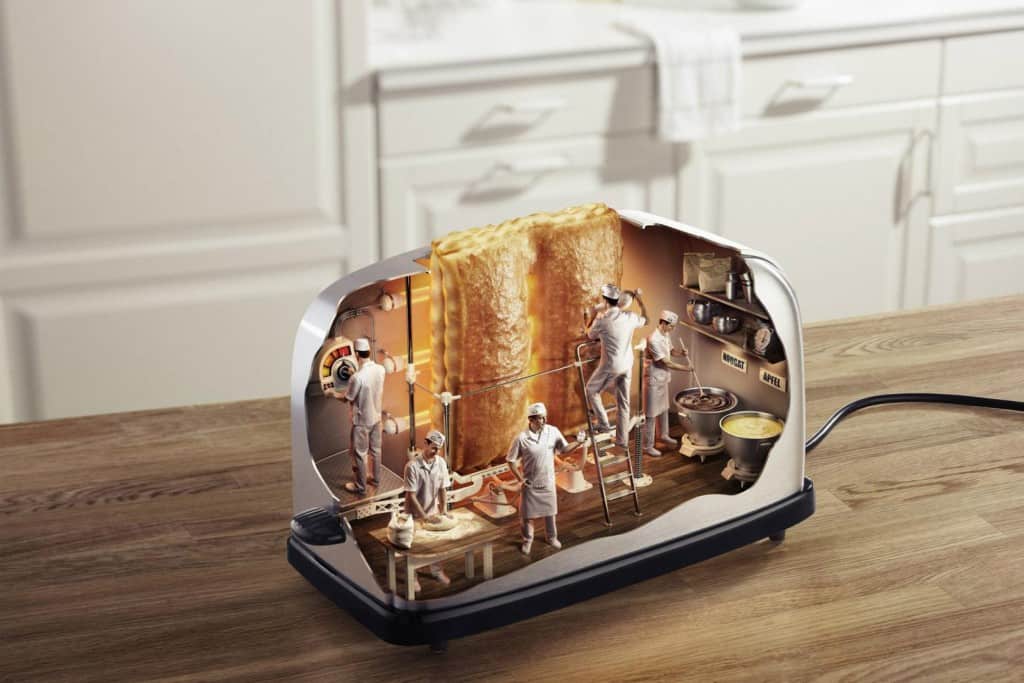 Sureal unik ini menggambarkan bagaimana sebenarnya toaster bekerja memanggang makanan.