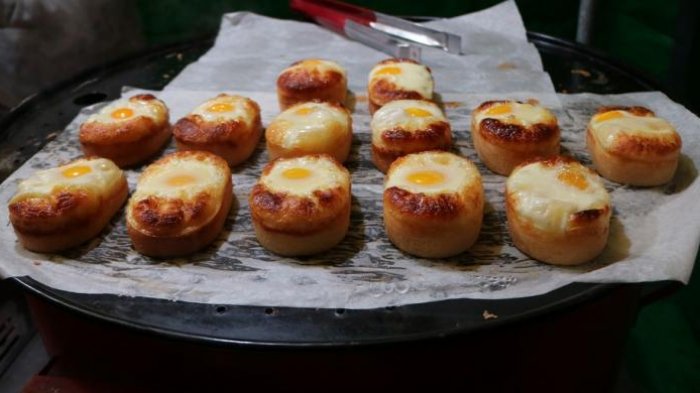 Hal yang jarang ditemui adalah roti dengan isian telur rebus utuh.