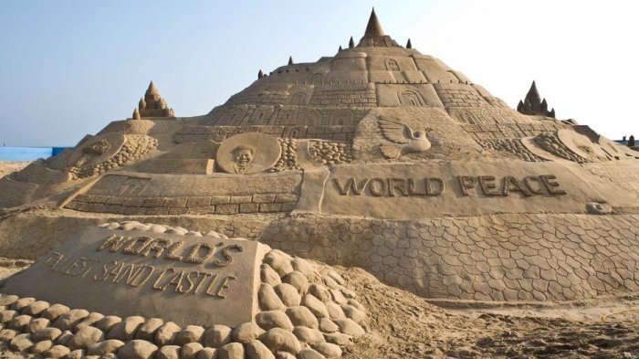 5. Kastil pasir tertinggi di dunia, Sudarsan Pattnaik membangun kastil setinggi 49 kaki di Odisha, India