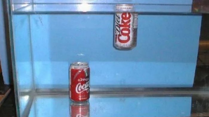 Sebaliknya, jika yang kamu jatuhkan adalah diet coke maka ia akan mengambang.