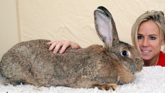 Parahnya, dengan panjang tubuh 3 kaki atau hampir satu meter, kelinci yang malang ini akan dinobatkan sebagai kelinci terbesar di dunia.