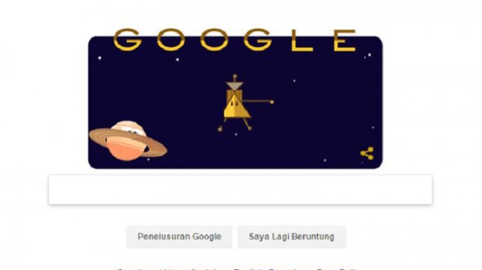 Doodle tersebut mempersonifikasi Cassini yang berhasil memotret lingkungan dalam cincin Saturnus.