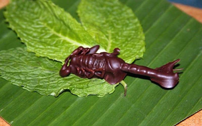 Seperti namanya, cokelat asal Thailand ini terbuat dari kalajengking panggang,