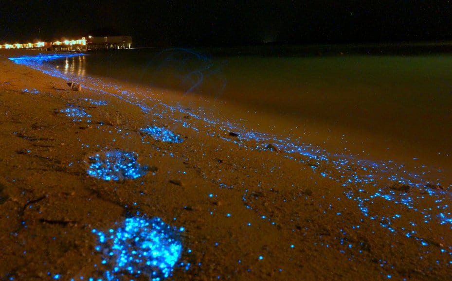 Warna biru ini sebenarnya berasal dari bintik-bintik plankton yang disebut bioluminescence.