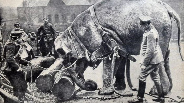 Selain burung merpati yang digunakan untuk mengirimkan pesan dan unta oleh pasukan Arab, Jerman malah menggunakan 'jasa' gajah untuk memecahkan hambatan yang besar.