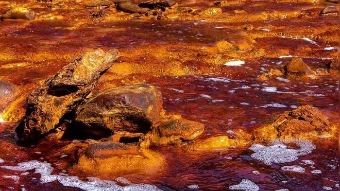 Sungai Rio Tinto di Spanyol merupakan kawasan perairan asam dengan punya warna yang aneh karena besi terlarut.