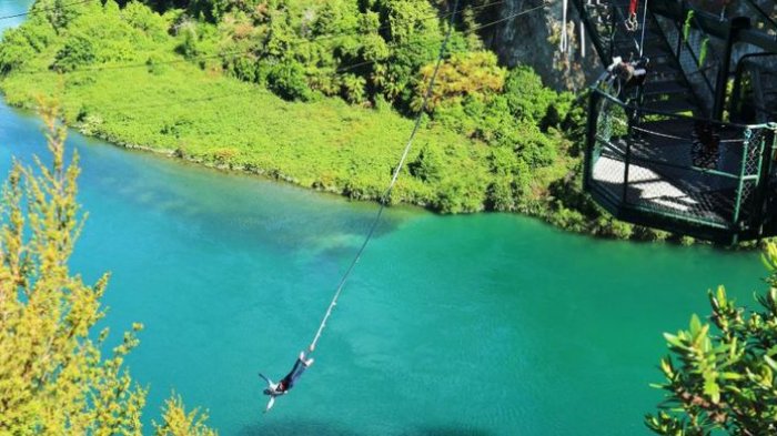 TRIBUNTRAVEL.COM - Selandia Baru adalah negara asal bungy jumping atau melompat dari ketinggian menggunakan tali.