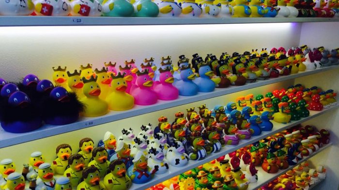 Mengunjungi toko ini, dijamin rasanya travelers pingin memborong semua bebek karet yang dijual di sana.