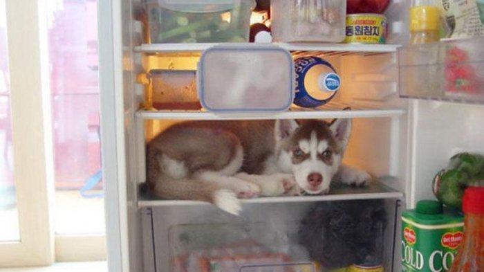 Dia menjadikan kulkas sebagai tempat persembunyian.