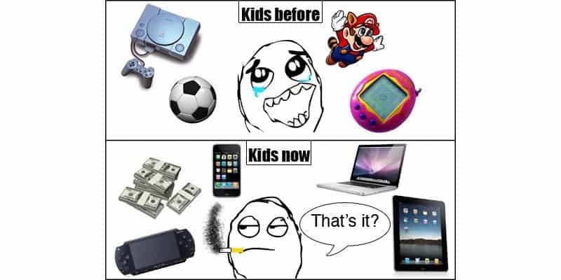 Kalau dulu permaiananya sih PS, tamagochi, bola, main tali, dan sebaginya.