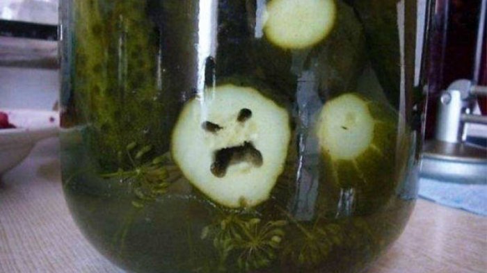 7. Wajah acar ini seolah marah karena sudah memasukkannya ke dalam wadah.