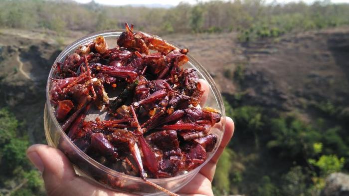 TRIBUNTRAVEL.COM - Foodies mungkin pernah mendengar, di Gunung Kidul orang menjual belalang sebagai kudapan.