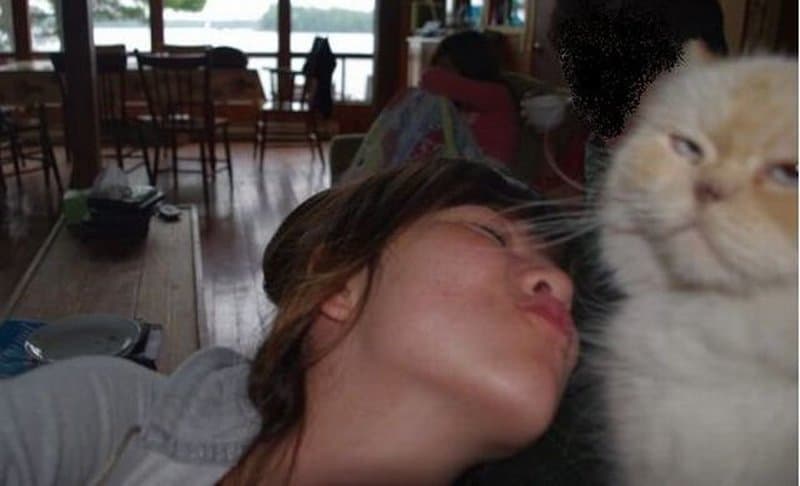 8. Perhatikan ekspresi kucing ini saat menolak ciuman dari si pemilik.