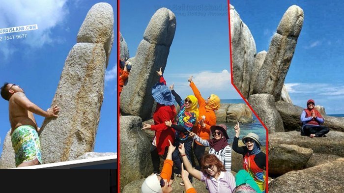 TRIBUNTRAVEL.COM - Sebuah batu menyerupai alat kelamin pria menjadi obyek foto bagi sejumlah wanita.