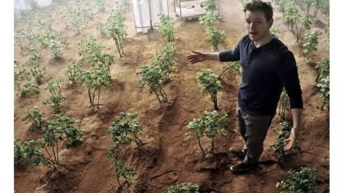 Dalam film tersebut, karakter Damon harus bertahan hidup di Mars dan salah satu triknya adalah menggunakan fesesnya sebagai pupuk untuk menumbuhkan kentang.
