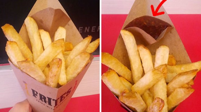 10. Wadah French Fries ini memiliki 'ruang kecil' untuk menyimpan saus.