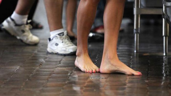 Kedua tipe calon penumpang tersebut akan sangat berisiko terinfeksi bakteri jika berjalan melewati keamanan bandara tanpa alas kaki.
