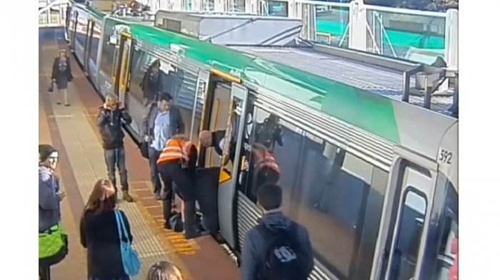 Mereka mencoba membebaskan pria itu, namun kakinya terjepit di antara kereta dan peron sehingga dia tidak bisa bergerak.