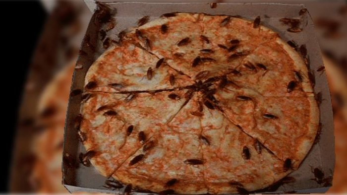 10. Oh no! Pizza favorit kita malah dikerubuti kecoak!