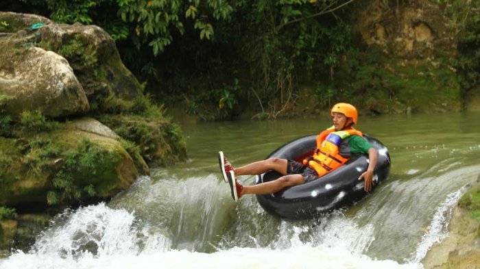 "Asyik, river tubing di sini mengasyikkan. Pemandangannya bagus, panoramanya indah, banyak spot foto yang menarik. Kanan-kiri sungai masih alami banget," kata gadis berkerudung itu, kemarin.